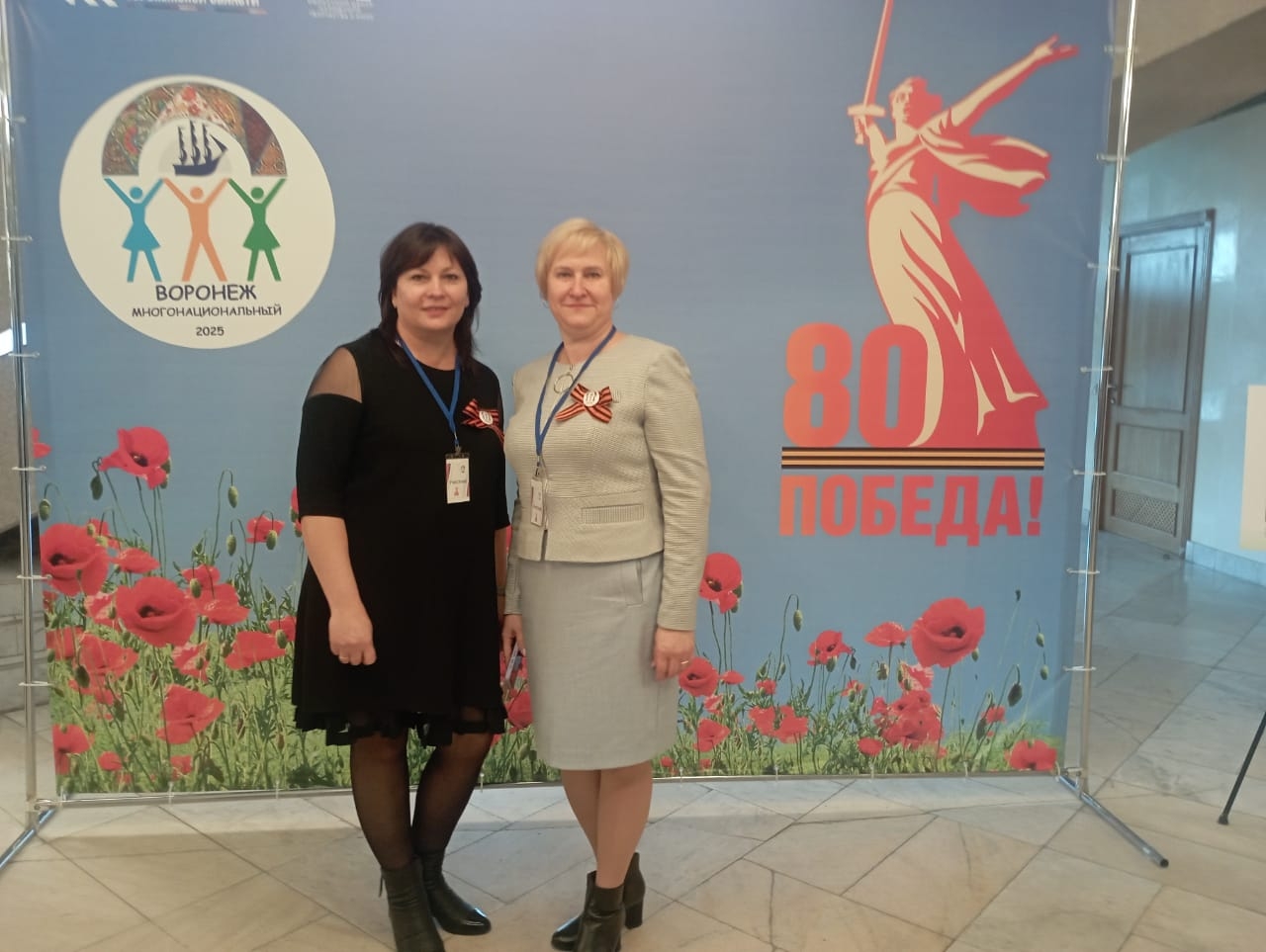 28 октября руководитель МКУ «Управление по культуре Таловского муниципального района» Наталья Викторовна Литвинова и методист МКУ «КДЦ» Татьяна Шумилова приняли участие в XV областном фестивале «Воронеж многонациональный», посвященном 80-летию Победы в Великой Отечественной войне. Площадкой юбилейного мероприятия, прошедшего под девизом «Одна на всех Великая Победа», стал Воронежский концертный зал.