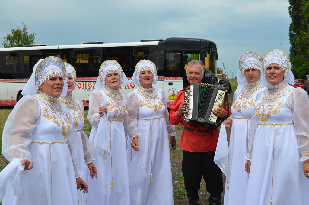 От музея до Певческого поля протянулся песенный коридор, который организовали участники самодеятельных коллективов Таловского района – ансамбли «Бирючаночка», «Зоренька» (Нижняя Каменка), «Ивушки» (Михинка), «Надежда» (Ст. Тишанка). У ворот гостей с хлебом-солью встречали коллективы «Анастасия» (Александровка) и «Сударушка» (КДЦ).